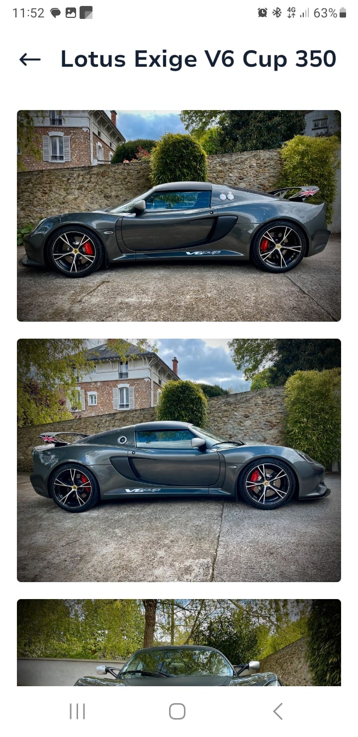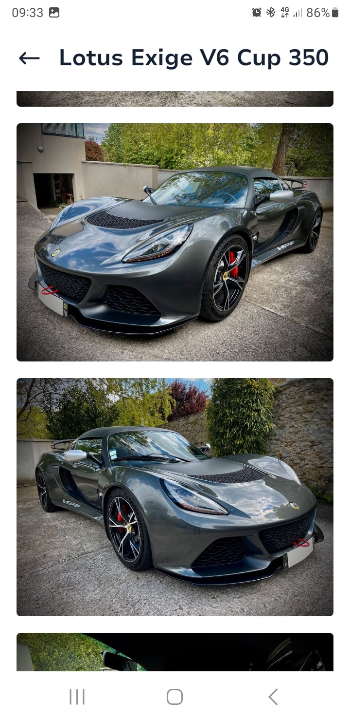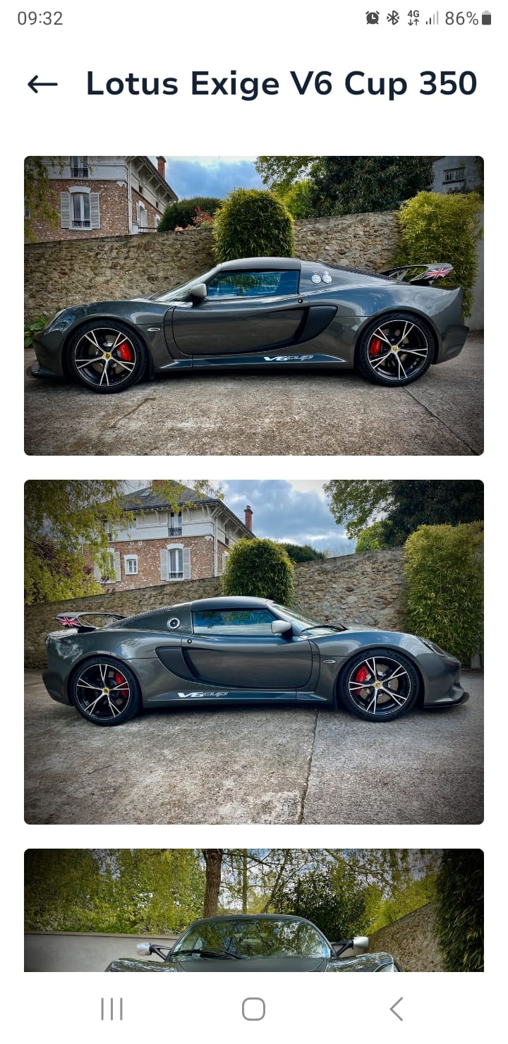 À vendre Lotus Exige V6 cup, n°27, 34.000km, carnet à jour.