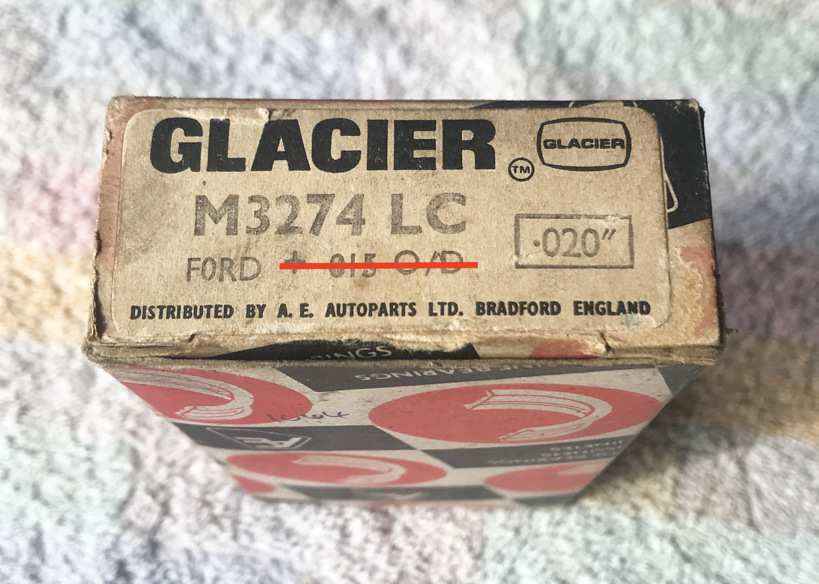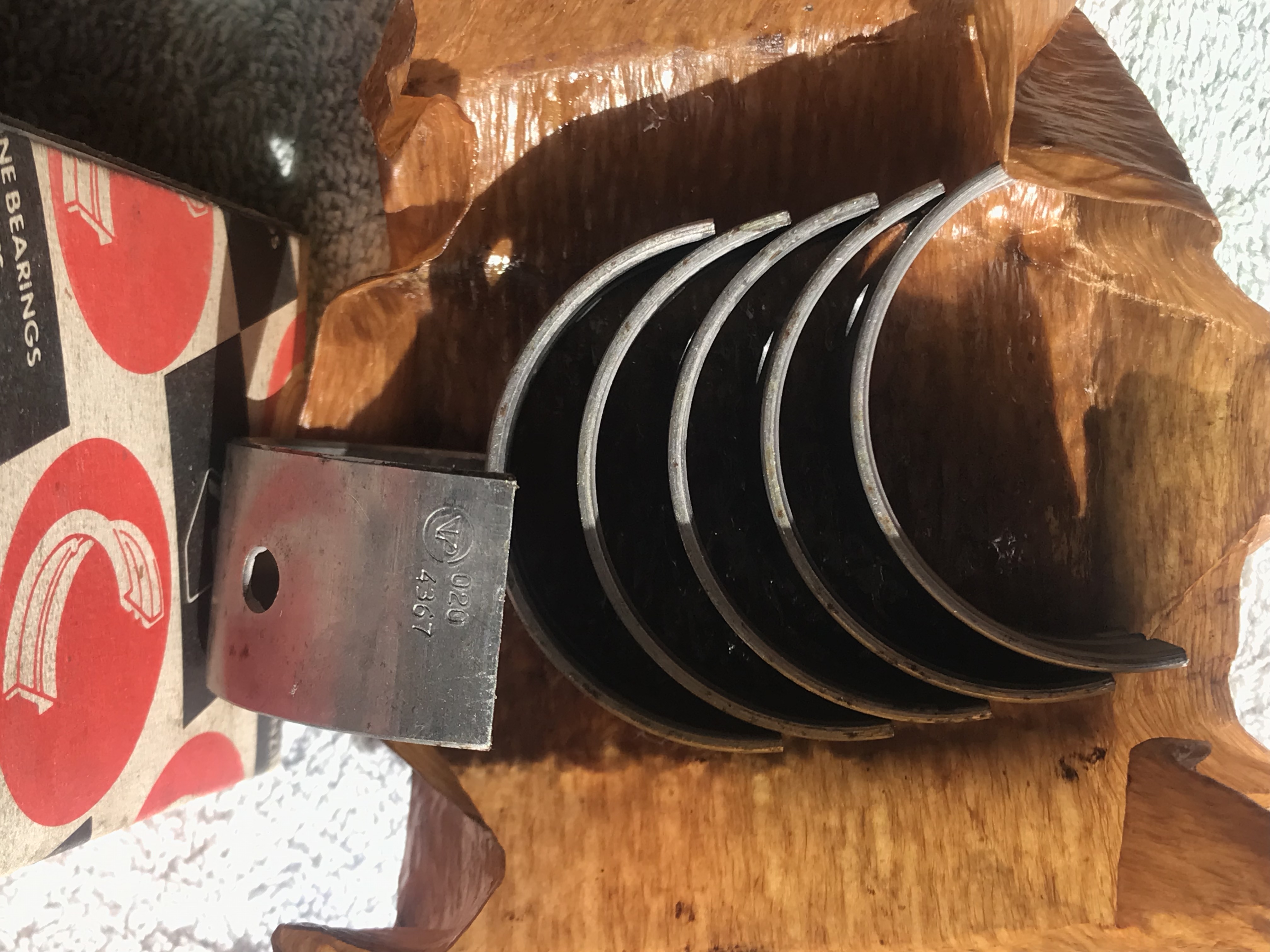- un jeu de coussinets de palier de vilebrequin Glacier M3274LC, pour vilebrequin à 3 paliers (Ford 105E et Ford 109E), vintage mais neuf, jamais utilisé, pour paliers principaux (main) rectifiés à -0,020" uniquement (l'indication +0,015" indiquant une rectification externe des paliers est erronée, d'où la vente) : 30€