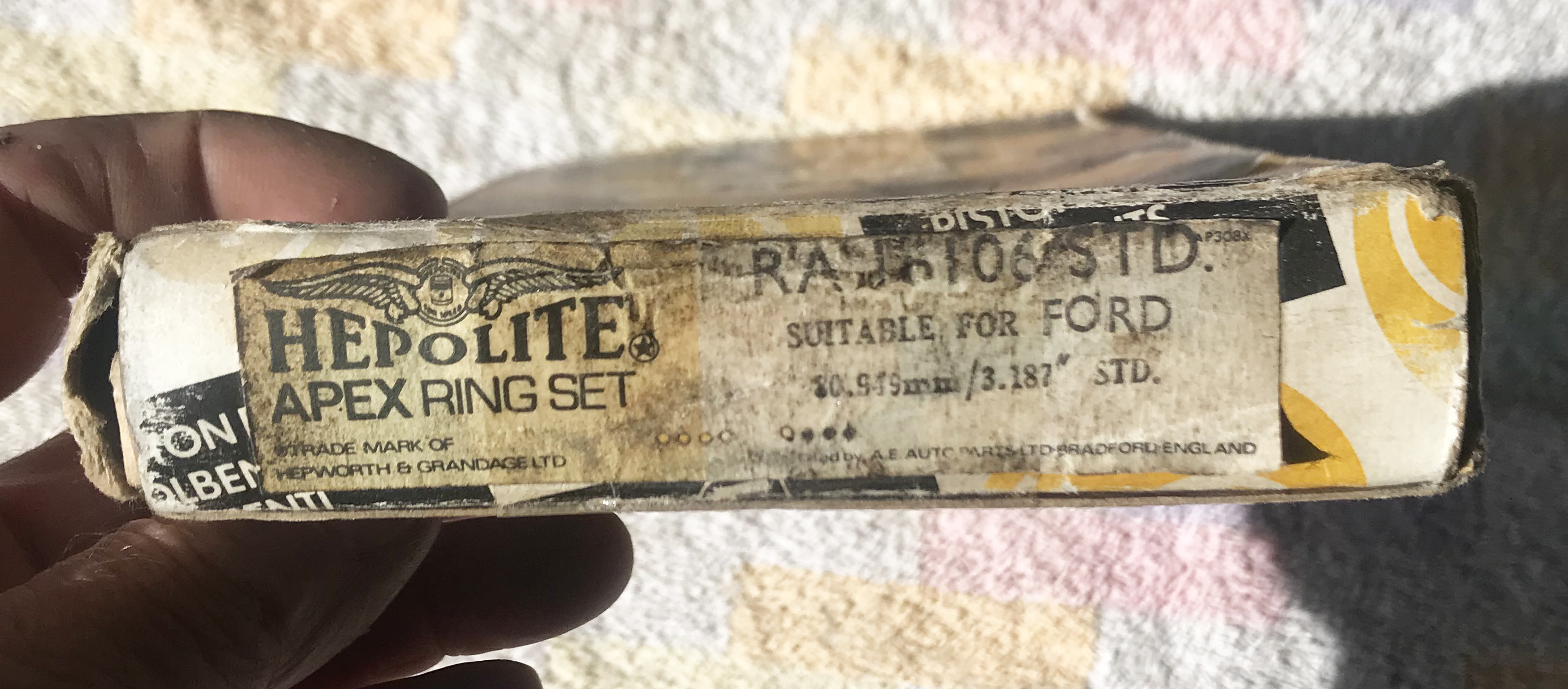 - un jeu de segments Hepolite RA16106STD, vintage mais neuf, jamais utilisé, pour alésage standard, 3 segments par piston soit 12 segments au total, compression supérieur et intermédiaire 1,98 mm (0,0781"), racleur 4 mm (0,1575"), diamètre 80,99 mm (3,19") : 30€
